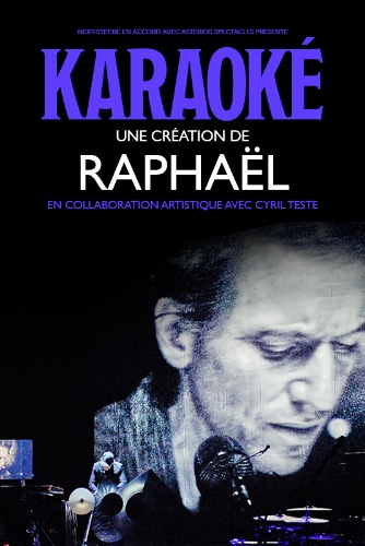 « Est-ce qu’un scorpion abandonne sa carapace pour la nuit ? » — Encore et toujours ce même rêve... Monter sur scène sans être préparé, que fait-on dans ces cas-là ? demande le chanteur Raphaël à l’IA de son téléphone. — Un karaoké, lui répond l’IA. C’est ta seule chance. Une bande d’un tube populaire démarre à plein volume, puis s’interrompt : Désolé vous n’avez pas les droits pour cette chanson... Karaoké n’est pas un concert ordinaire C’est une forme libre et hypnotique, d’une grande audace formelle. Un labyrinthe où Raphaël se perd entre ses chansons, des reprises fantômes et la voix d’une intelligence artificielle omnisciente. Sur scène, quatre musiciens et une actrice, mais aussi des images mentales qui remontent à la surface, des illusions, et un karaoké qui tourne au cauchemar. Le public est témoin d’un voyage intérieur : souvenirs d’enfance, fantômes familiaux, convoquant Bowie ou Johnny, des crashs réels et imaginaires. Le spectacle oscille entre humour et vertige, poésie et satire technologique. Ici, les chansons sont des portes qui s’ouvrent sur d’autres mondes. Un show total, musical et visuel, où la vérité apparaît entre les mots derrière les superpositions d’écrans. Et où, peut-être, la seule solution est d’oser laisser tomber sa carapace. Raphaël